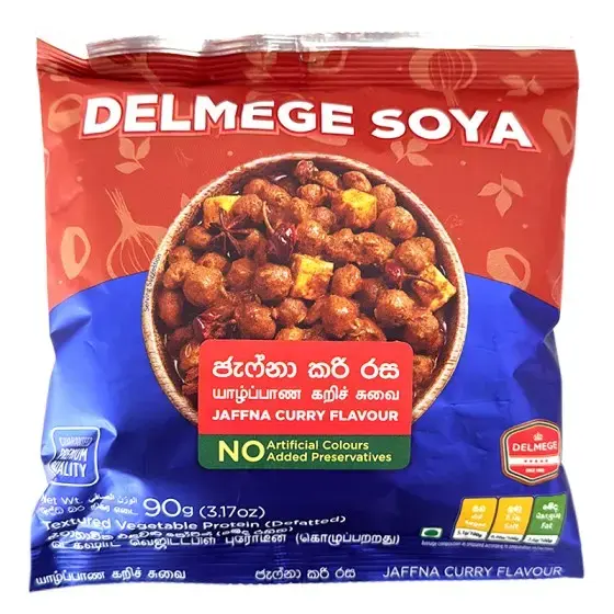 Delmege Soya Cuttlefish Flavour is a textured vegetable protein made from soy, specially seasoned to deliver the taste of cuttlefish while remaining a vegetarian-friendly product. It has a firm, chewy texture that absorbs flavours well, making it ideal for stir-fries, curries, and quick side dishes. Free from artificial colours and added preservatives, this product is a popular and convenient protein option in Sri Lankan cuisine.