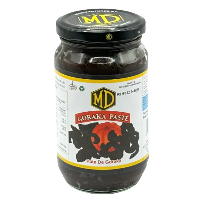 MD Goraka Paste is a traditional Sri Lankan cooking ingredient made from dried goraka (Malabar tamarind), known for its deep sour flavor and rich aroma. Commonly used in fish curries and seafood dishes, this paste adds authentic tanginess and depth without overpowering the dish. Ready to use and convenient, it eliminates the need for soaking or grinding dried goraka, making it an essential pantry item for Sri Lankan and South Indian cuisine.