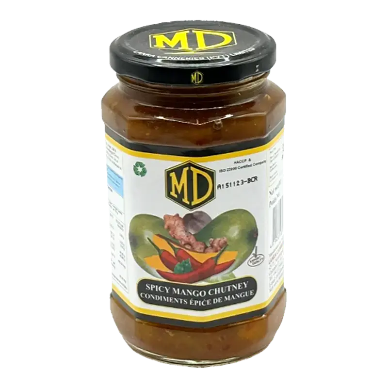 MD Spicy Mango Chutney is a bold and flavorful condiment made from ripe mangoes blended with aromatic spices and chili for a perfect balance of sweetness, tang, and heat. This chutney pairs exceptionally well with curries, rice dishes, rotis, samosas, grilled meats, and snacks. It can also be used as a spread or dip to add a spicy fruity kick to everyday meals. Rich in taste and texture, it’s a classic accompaniment in South Asian cuisine.