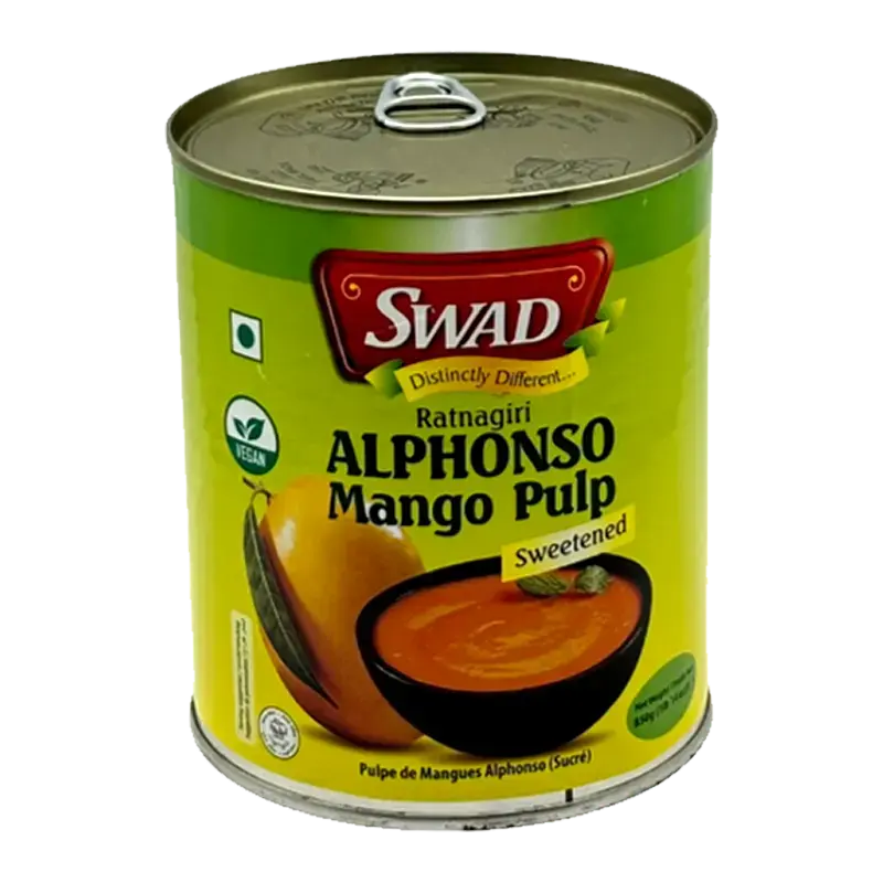 SWAD Ratnagiri Alphonso Mango Pulp (Sweetened) is a premium quality mango puree made from ripe Ratnagiri Alphonso mangoes, known for their rich aroma and luscious natural sweetness. This ready-to-use mango pulp is perfect for creating smoothies, lassis, milkshakes, desserts, ice creams, sauces, or simply enjoying its authentic tropical flavor straight from the can. Sweetened to enhance the natural mango taste, it brings the vibrant taste of real Alphonso mangoes to your kitchen any time of year.